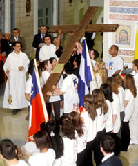 Photographs of school celebrations with the World Youth Day cross